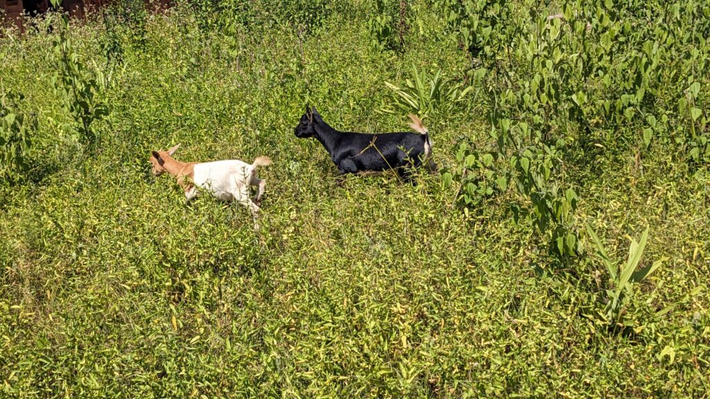 Élevage de poules, porcs, chèvres, moutons sur les parcelles gérées en agriculture durable