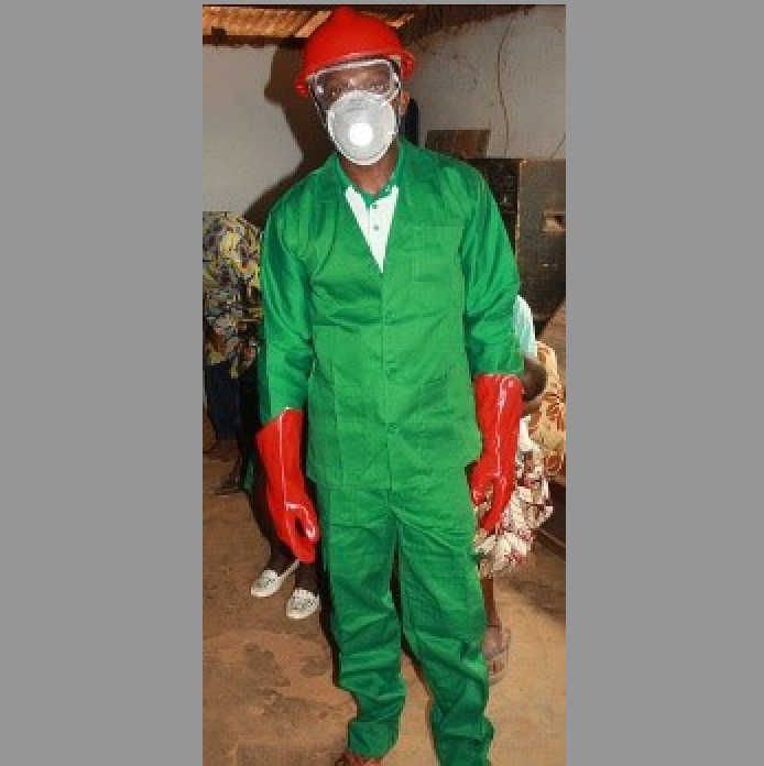 Pour ces raisons, les ADM informent les planteurs sur la nécessité de porter des équipements de protection individuelle (EPI) et les aident à s’équiper pour se protéger des produits dangereux. Un équipement complet comprend une combinaison, un casque, un masque, des lunettes et des gants.